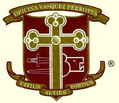 Así nace nuestro escudo de armas, noble símbolo de nuestras creencias, el cual condensa los más dignos elementos de la heráldica: En campo de color Vino Cardenal, una Cruz Gótica que ocupa su centro, a la que acompañan, del lado inferior izquierdo, la silueta de dos espadas, una por la empuñadura y otra por la punta y del lado inferior derecho la silueta de un león, en el tope del campo una cinta sesgada con la inscripción: "OFICINA VASQUEZ PERROTTA", y al pie del campo otra cinta sesgada con la inscripción latina: "Citius, Altius, Fortius". Citius, representado por el golpe de la espada, significa: "Más Rápido" y simboliza nuestro deseo de ser cada año más solícitos y eficientes en el desempeño de nuestro trabajo; Altius, representado por la Cruz, significa: "Más Alto" y simboliza la búsqueda de que cada año nuestros principios éticos, morales y cristianos sean más elevados y Fortius, representado por el León, significa: "Más Fuerte" y simboliza nuestro deseo de madurar cada año en el análisis de nuestro carácter.